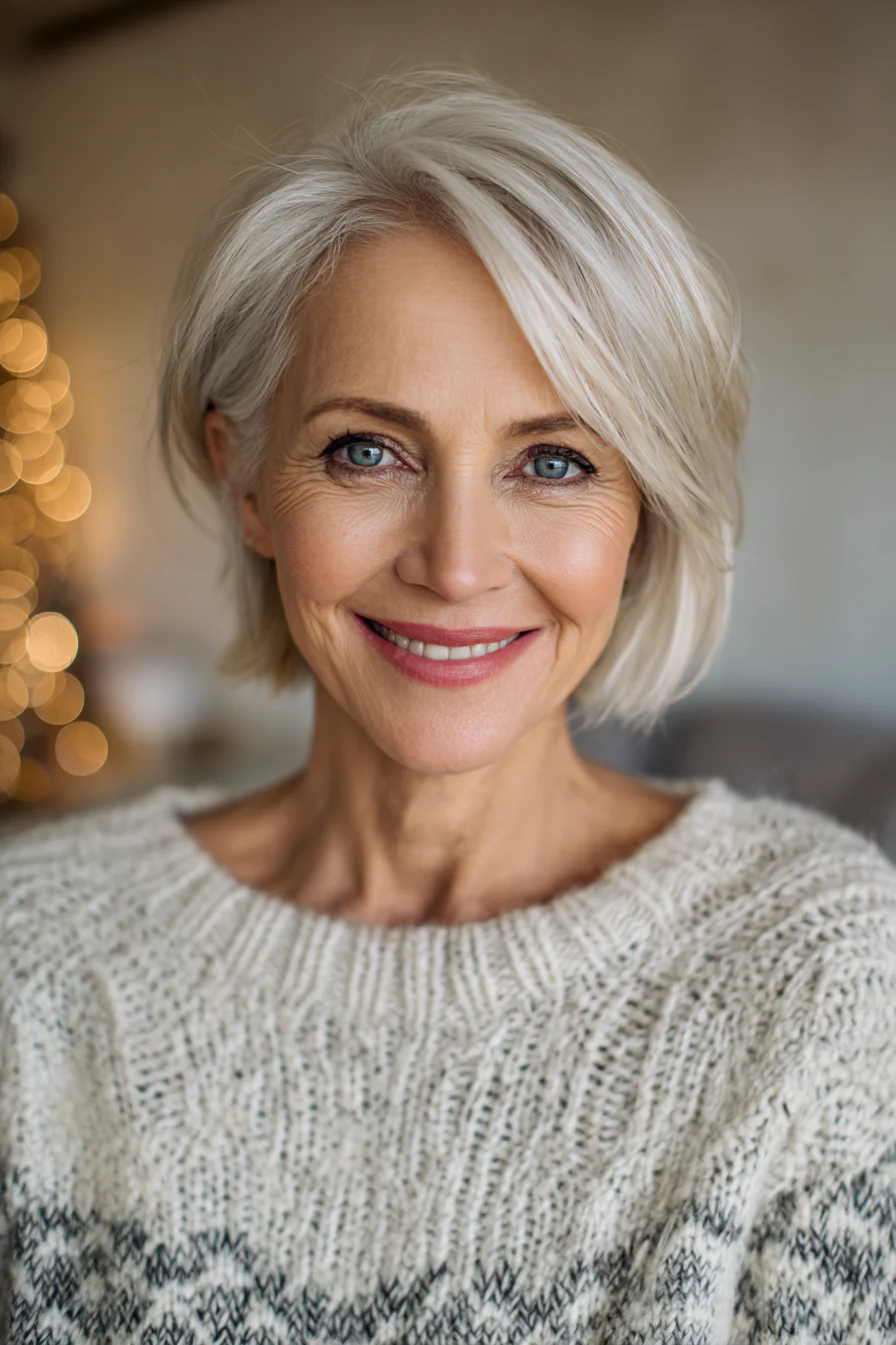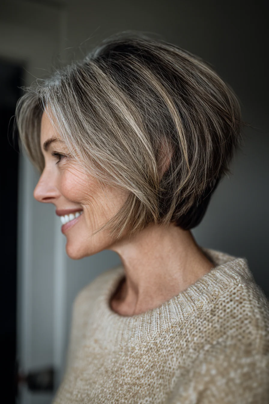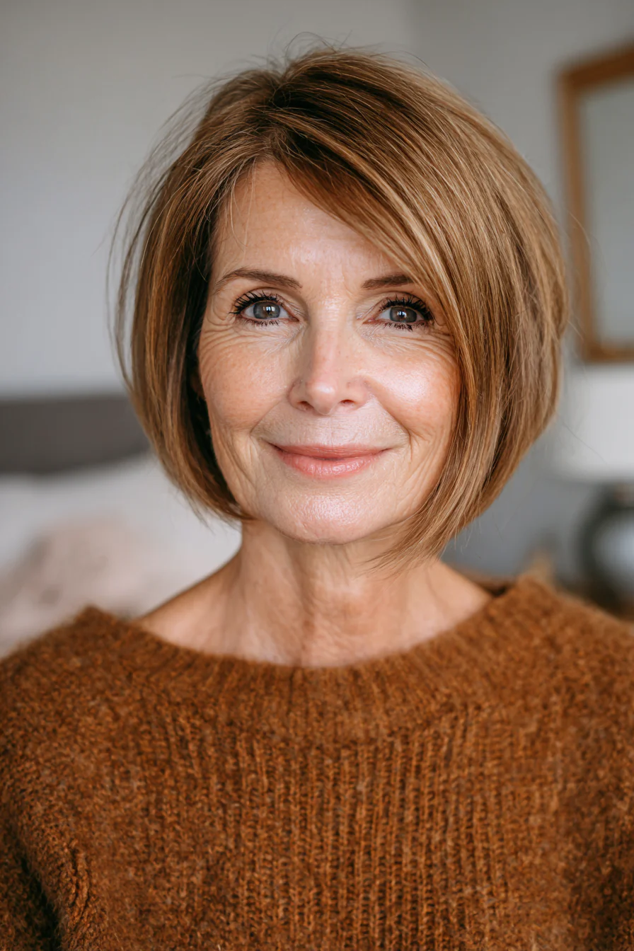 Самый удачный боб после 50 выглядит не жестким, а собранным: объем есть у макушки, контур остается плотным, линии у лица мягко подсвечивают черты. Сохраните 2-3 варианта и обсуждайте с мастером не только длину, но и оттенок, именно он часто дает половину омолаживающего эффекта.