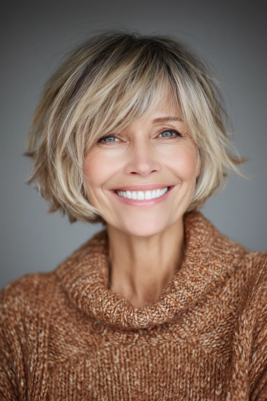 После 50 волосы чаще теряют не длину, а плотность: макушка оседает, концы выглядят тоньше, а привычный объем держится до первой влажности. Короткий боб решает эту задачу куда лучше длинной укладки: он собирает форму, делает волосы визуально гуще и дает лицу более свежий, подтянутый вид.