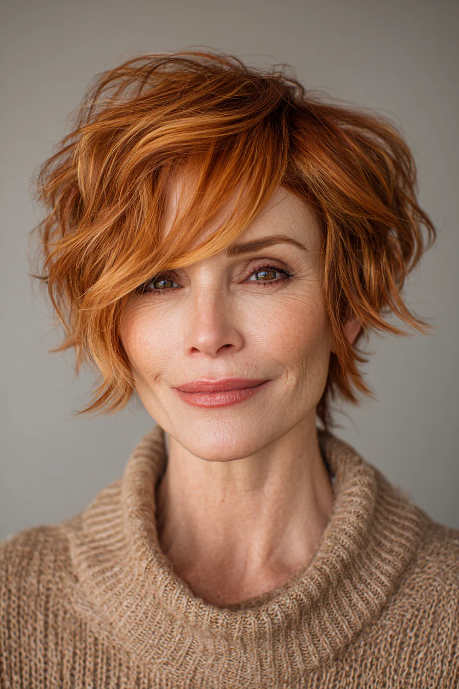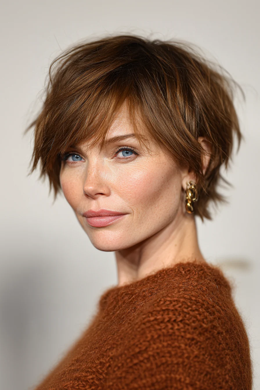 4. Короткая взъерошенная пикси в светлом медно-каштановом оттенке