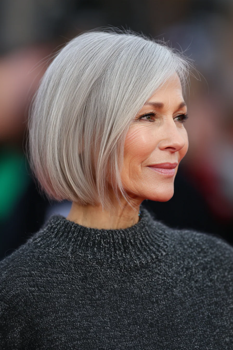 Эта форма хороша тем, что создает движение, но не истончает волосы еще сильнее. Мягкий переход в натуральную седину выглядит благородно и помогает седому оттенку работать на стиль, а не на возраст.