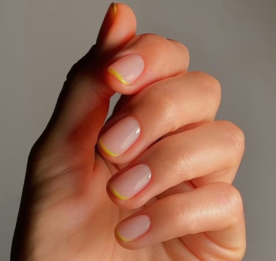 Тонкая линия контрастного цвета на кончике - например, мягкий жёлтый - добавляет свежести.