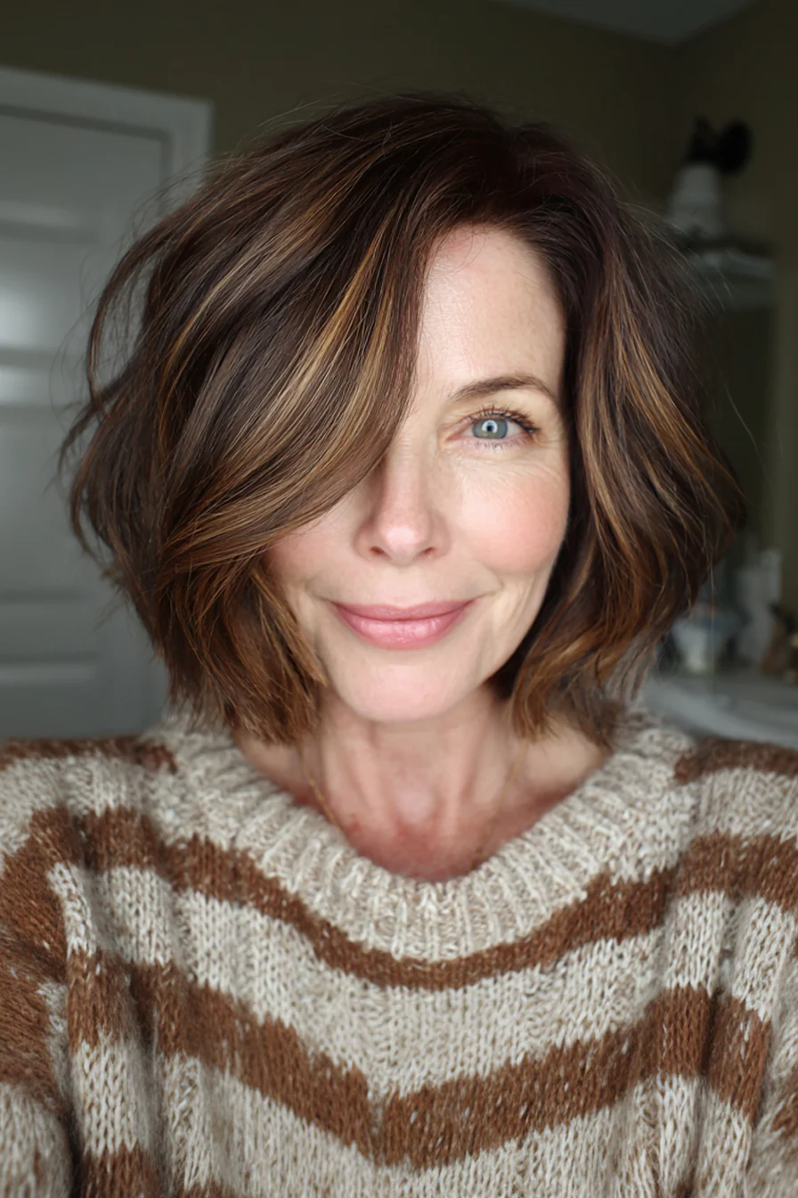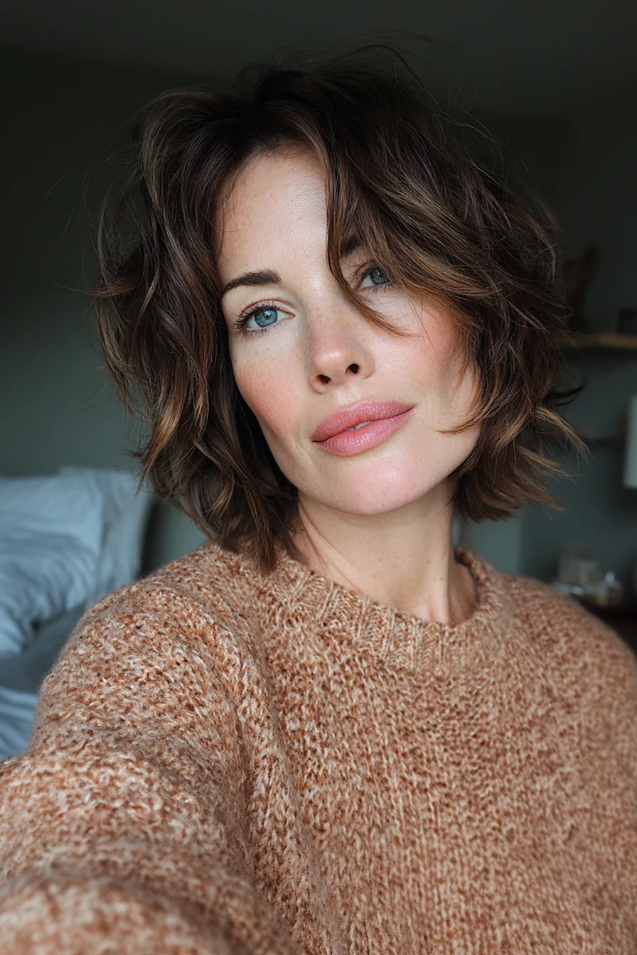 13. Небрежный шэг-боб в тёплом оттенке брюнет