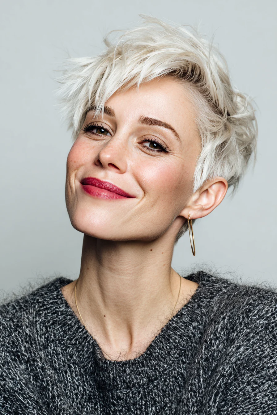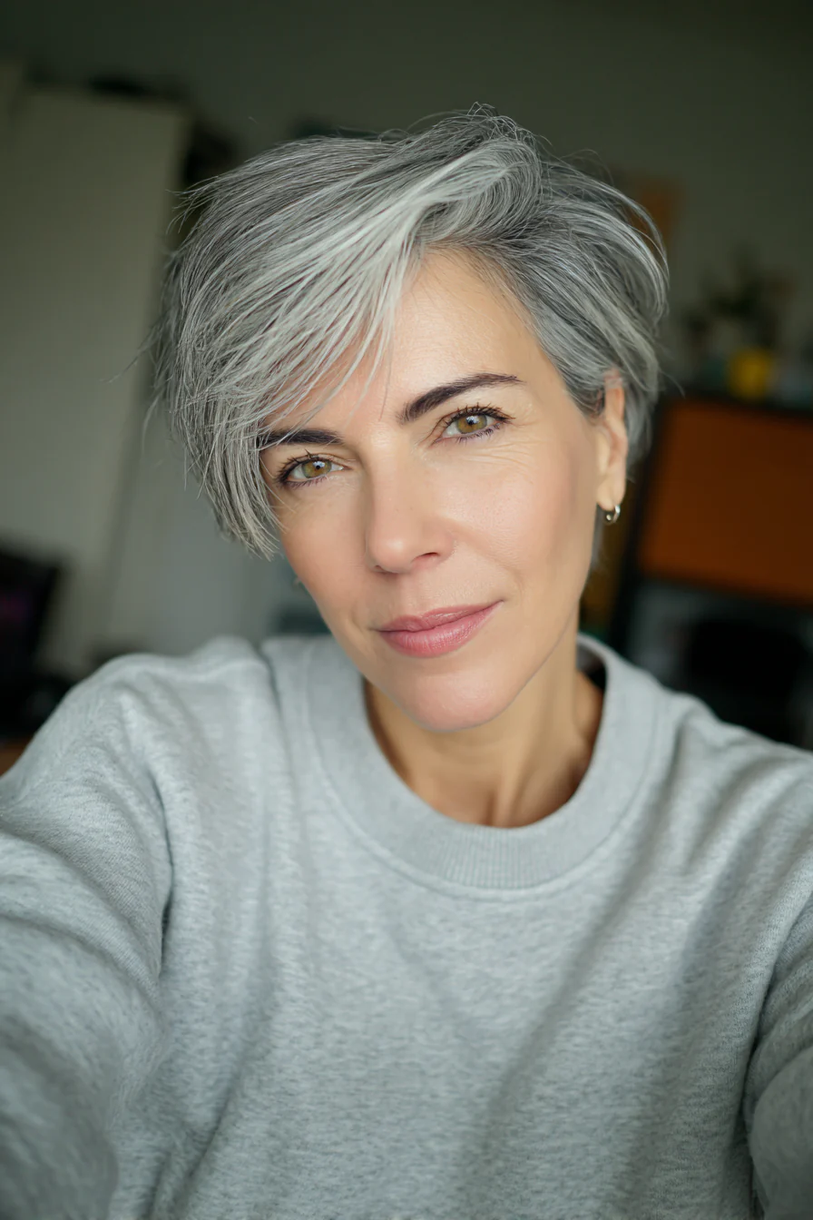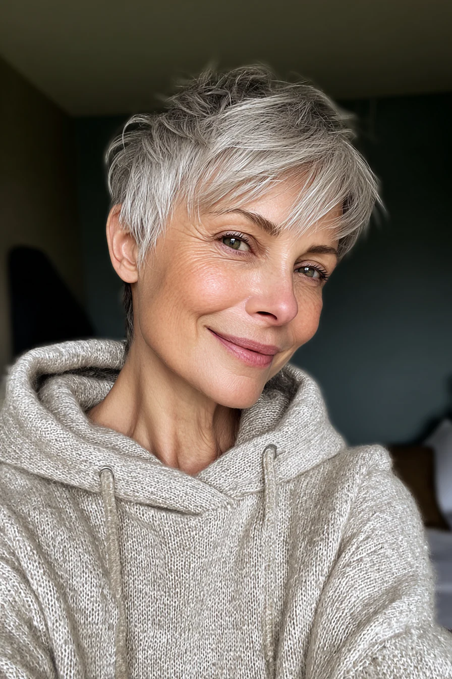 16. Короткая текстурная стрижка в серебристо-сером оттенке