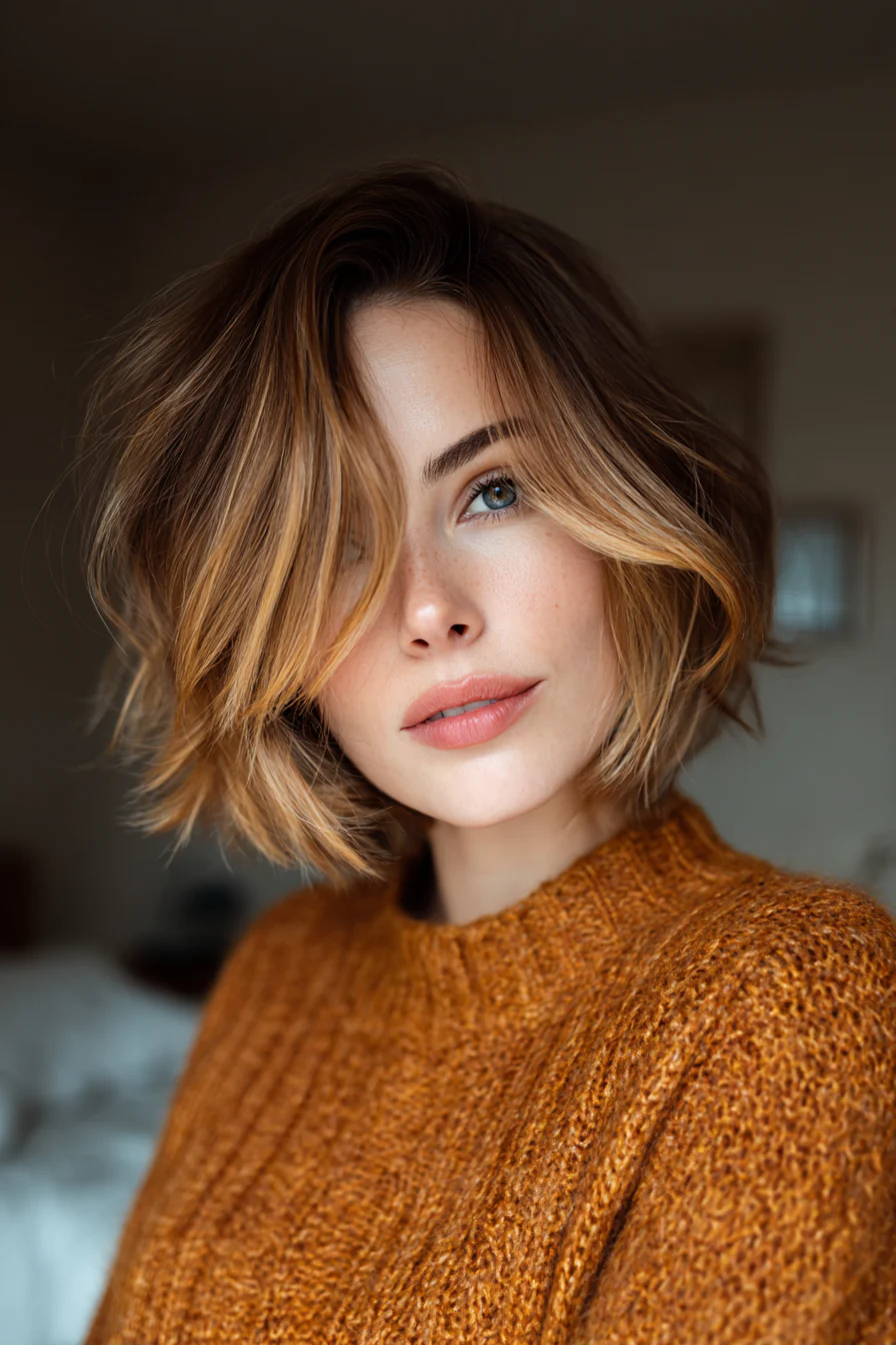 Такая форма даёт волосам подвижность и красивый объём без лишней тяжести. Золотисто-каштановый оттенок особенно хорошо работает, когда хочется больше тепла у лица.