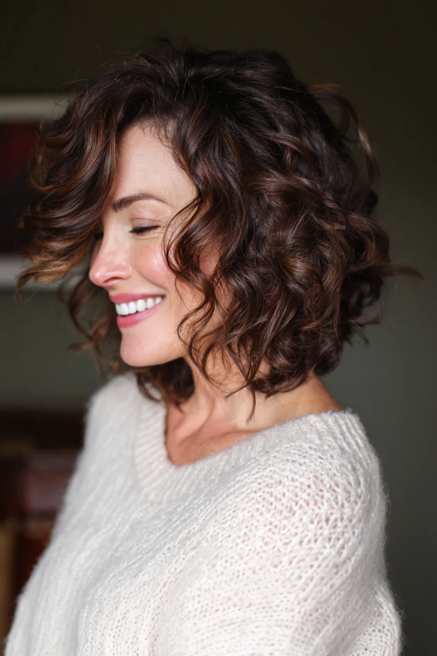 11. Кудрявая стрижка до плеч с медно-каштановым оттенком