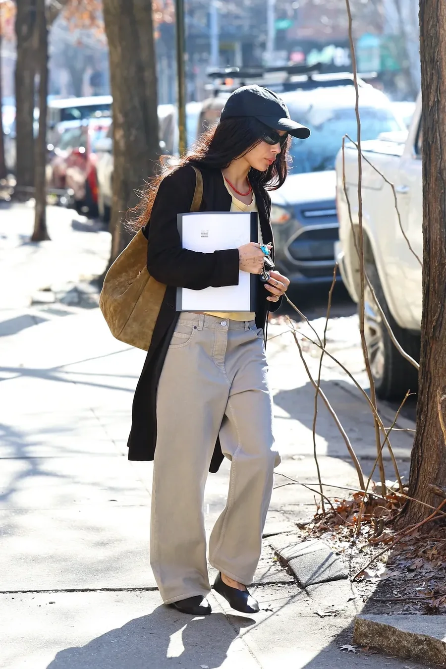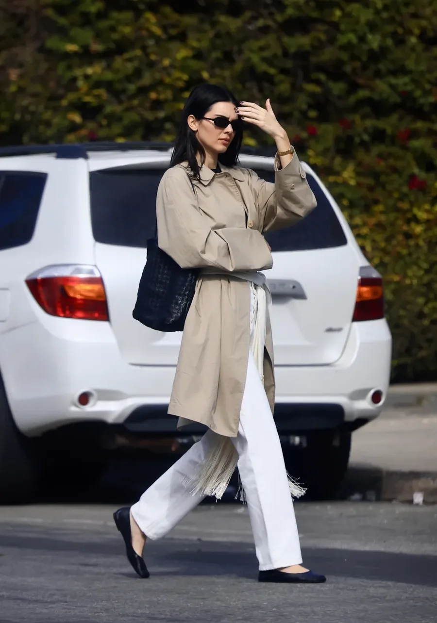 Совсем другой эффект дают плоские модели обуви. Кендалл Дженнер и Зои Кравиц выбирают лаконичные балетки и закрытые туфли без каблука, которые подчёркивают расслабленный, но продуманный стиль. Такие сочетания особенно хорошо работают с прямыми или слегка расклёшенными джинсами.