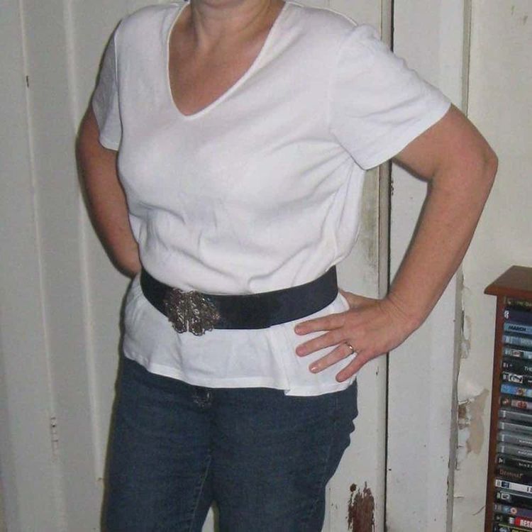 Массивные пояса с гигантскими пряжками тогда жили своей жизнью. Их надевали поверх тонких трикотажных кофт, туник и платьев, причем строго на уровне бедер. Это не несло никакой функциональной нагрузки, зато мастерски «разрезало» фигуру, лишая ее пропорций.