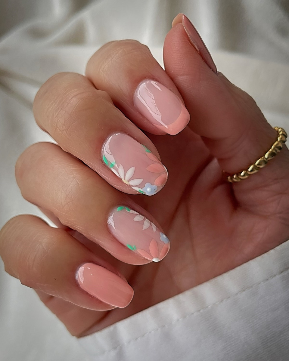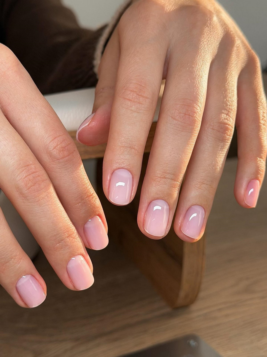 На короткой длине это особенно важно: чем деликатнее переход, тем чище выглядит рука. Самые удачные сочетания, молочный и розовый, персиковый и кремовый, светло-лиловый и прозрачная база.