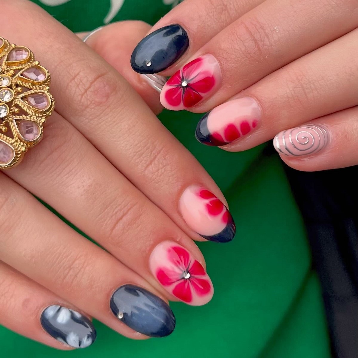 Когда однотонный маникюр кажется слишком спокойным, а сложный дизайн уже утомляет, на сцену выходит blooming nails. Это мягкие растекающиеся узоры, почти акварель, но без ощущения перегруза.