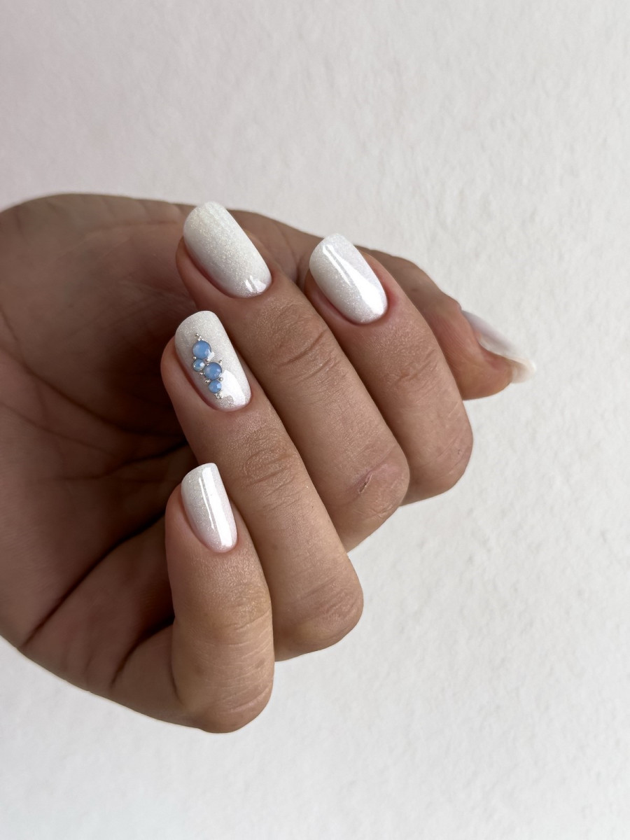 У молочного оттенка в апреле сильная позиция, потому что он дает все сразу: чистоту, мягкость, ухоженность и свет. Если добавить деликатное сияние, маникюр начинает выглядеть почти ювелирно, но без тяжести.