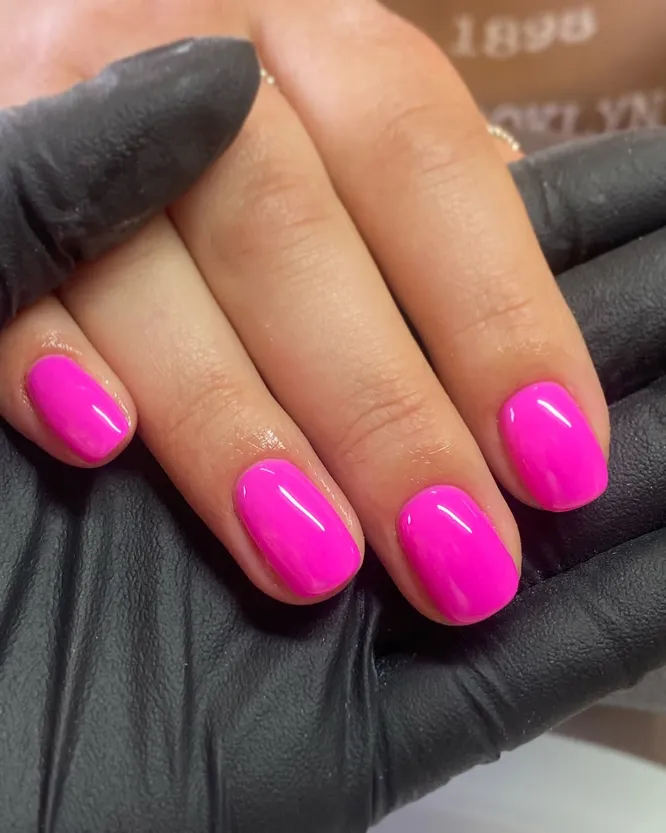 Фуксия, цвет с характером, но на короткой длине он выглядит удивительно чисто и современно. Сохраняет всю свою сочность, добавляет образу энергии и не требует никаких дополнительных деталей. Тот случай, когда одного цвета уже достаточно, чтобы маникюр выглядел эффектно.