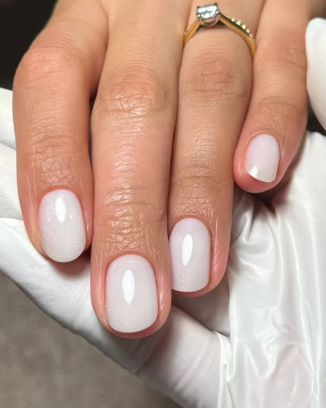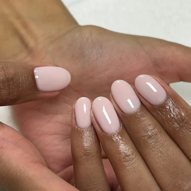 Один из тех оттенков, которые не пытаются перетянуть внимание на себя, но делают руки заметно ухоженнее. Пудрово-розовый с молочным подтоном смягчает общий вид, делает покрытие деликатным и дает тот самый эффект спокойной, дорогой аккуратности. На коротких ногтях он смотрится особенно чисто и красиво.