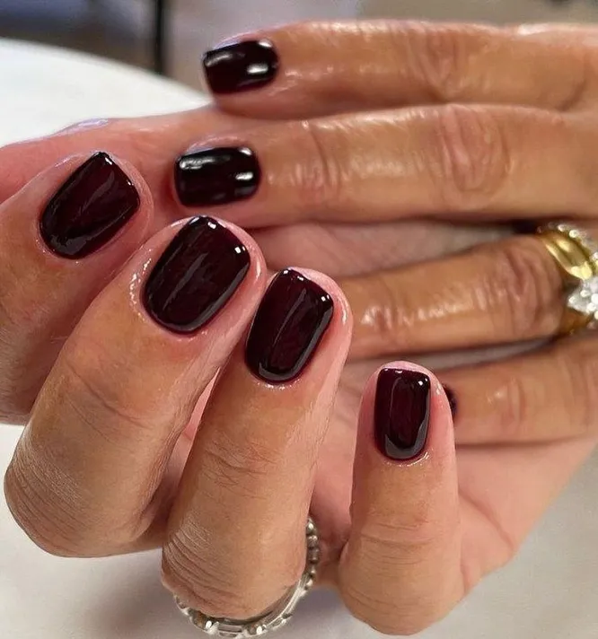 Не алый, не сливовый, а именно винный, чуть приглушенный. На короткой длине такой оттенок выглядит особенно плотно и благородно, подчеркивает форму ногтя и моментально делает маникюр собраннее. Плюс у бордо есть редкое качество: он одинаково уместен и днем, и вечером, и почти никогда не выглядит случайным выбором.