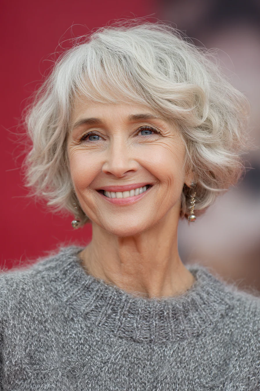 13. Короткий волнистый боб в серебристом оттенке