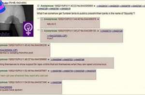 Интернет-тролли с ресурса 4chan заставили американских феминисток мочиться себе в штаны за равенство полов, и выкладывать фотографии в Twitter. Таким образом дамы поддерживали якобы жертв насилия, которые «во время нападения непроизвольно мочились» (еще один мем, созданный на 4chan).