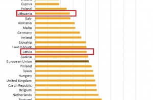 Таким образом, Латвия немного опередила Литву, где число внебрачных детей составляет 30%. Однако Латвию стремительно обогнала Эстония, где количество детей, рожденных вне брака, составило 56%.