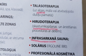 «Обратил их внимание на ошибки, но так ничего не исправили. На буклете было написано «atjaunošās procēduras» (вместо «atjaunojošās procēduras»), «sējas procedūras» (вместо «sejas procedūras»), «aļgas pamatā»( вместо «aļģes») «skastumkopšana» (вместо «skaistumkopšana»),