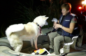 Кинологи Bezvests.lv периодически устраивают тренировки, на которых отрабатывают навыки поиска живых и утонувших людей. На этот раз местом проведения тренировок была выбрана река Даугава на Луцавсале. Вместе с тренером - руководителем кинологической службы Bezvests.lv Лайлой Скроделе в тренировке учавствовали кинологи и собаки поисковой организации. А лодкой управлял Гунтис Скроделис.