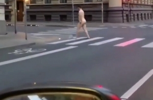 Рижанин выложил в Instagram ролик, на котором видно как по улицам столицы гуляет абсолютно голый мужчина.