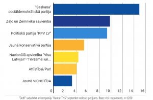 В сентябре самой популярной политической силой по-прежнему остается «Согласие», затем идет Союз «зеленых» и крестьян (СЗК), в свою очередь на третье место выдвинулась партия Артуса Кайминьша KPV LV. Об этом свидетельствует опрос, проведенный в сентябре порталом Delfi в сотрудничестве с компанией Kantar TNS.