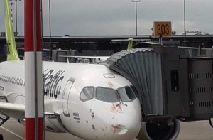 В соцсети Twitter специалист по отношения с общественностью Гинт Федерс опубликовал фотографию, на который изображен окровавленный самолет airBaltic.