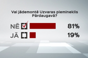С приближением выборов служба новостей Латвийского телевидения предложила кандидатам в депутаты Сейма ответить на вопросы, которые остро и неоднозначно воспринимаются в обществе. На этот раз у представителей партий спросили, надо ли демонтировать памятник Освободителям Риги от немецко-фашистских захватчиков в Пардаугаве. Как видно из видеоролика, большинство представителей баллотирующихся в Сейм 13-го созыва партий против такой инициативы.