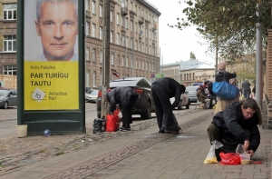 Латвийский фотограф Эдийс Паленс, работающий на агентство LETA, запечатлел предвыборные плакаты политических партий, размещенные на улицах Риги. Своими снимками автор поделился в своем аккаунте социальной сети Facebook.