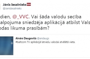 «Добрый день, Центр госязыка. Отвечает ли такая языковая последовательность в приложении поставщика услуг требованиям Закона о государственном языке?», - обратился Иесалниекс с вопросом к языковой инспекции в Twitter, ссылаясь на изображение пользователя Айнара Дауговича.