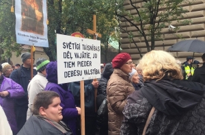 В среду, 3 октября, около 100 человек собрались на протестной акции у здания Сейма. Пикетчики потребовали пересмотреть меру пресечения, примененную к подозреваемому в торговле людьми и сексуальном насилии священнику из Резекне Павелсу Зейле, сообщает Skaties.lv .