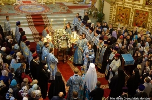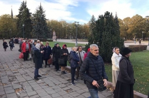 Очередь из верующих, желающих поклониться чудотворной Курско-Коренной иконе Пресвятой Богородицы «Знамение» сегодня во вторник, 9 октября растянулась на сотни метров. Люди стоят по несколько часов, чтобы помолиться у известной мировой святыни в соборе Рождества Христова в центре Риги. Хвост очереди растянулся до памятника Райнису.