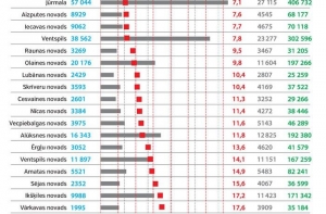 Например, в Вентспилском крае часовая рабочая ставка достигает 25 евро, в Риге - 19,35 евро, в Икшкиле и Вецпиебалге – 18 евро, в Елгаве и Гробиньском крае - 15 евро, в Илуксте и Олайне – 12 евро.