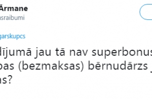 «А по такому случаю разве и так нет супербонуса - муниципальные детские сады (бесплатные) везде без очередей?», - вопрошает Зане Армане.