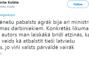 «Такое 6-месячное пособие раньше было и у работников министерств и Сейма. Автор конкретных норм к закону мне в какой-то момент признался, что это был способ, как поддержать именно латышские семьи, так как их в госуправлении большинство», - написала Колате.