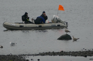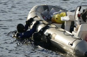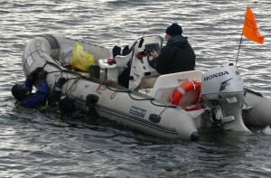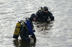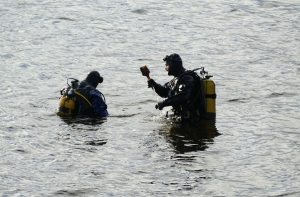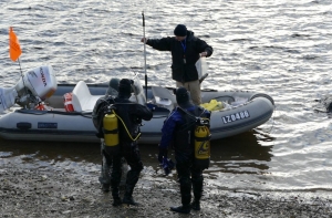 Добровольцы отработали много других разных нюансов, которые со стороны кажутся неважными, но очень актуальны при поисках утонувших: сигналы общения водолазов в воде с низкой видимостью, связь с оператором в лодке.