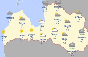 Пасмурная погода сохранится в Латгале. Здесь, а также местами в Земгале и Видземе ожидается небольшой дождь.