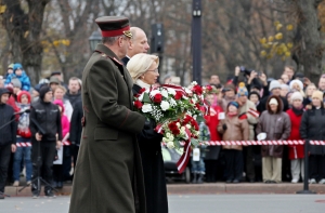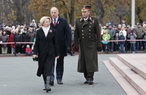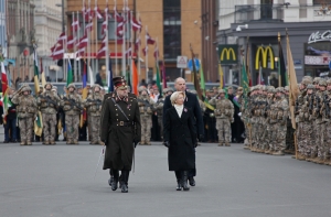 С торжественной речью к участникам парада и всем присутствующим обратилась спикер Сейма Инара Мурниеце. В параде также участвовал министр обороны Раймонд Бергманис и командир НВС Леонид Калниньш.