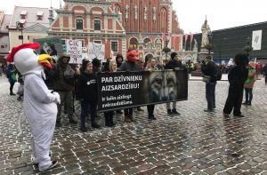 Как рассказал корреспондент портала Mixnews.lv, собравшиеся скандировали «Чего мы хотим? Свободы животным! Когда мы этого хотим? Сейчас!» и «Что было раньше - курица или клетка?».