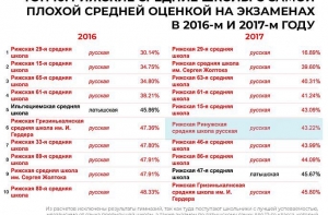 Журналист и основатель центра Re:Baltica Инга Сприньге сравнила рейтинги успеваемости в рижских средних школах с самыми плохими оценками на централизованных экзаменах в течение нескольких лет. Журналист пришла к выводу, что именно у учеников школ нацменьшинств самые плохие результаты, пишет Rus.db.lv.