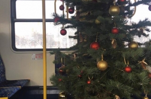 В воскресенье, 23 декабря, в первом вагоне поезда, который направлялся из Риги в Елгаву, была установлена живая украшенная разноцветными шарами и шишками рождественская елка, рассказали очевидцы.