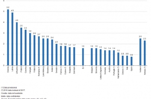 В 2017 году среди европейцев больше всех алкоголь употребляли в странах Балтии - в Эстонии общая доля затрат на алкоголь составила 5,2%, второе место заняла Латвия (4,9%) и тройку лидеров замкнула Литва (4,0%). Об этом свидетельствуют результаты исследования агентства Eurostat.