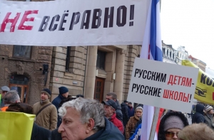 В акции приняли участие несколько сотен людей, передает корреспондент Mixnews. Они держали плакаты с надписями: «Хватит пилить евроденьги», «Русским детям - русские школы», «Нам не все равно» и т.д.