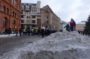 Марш за социальную справедливость начался в 12.00 на Домской площади, откуда его участники отправились к Рижскому замку и Сейму.