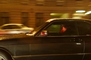 Фотография сделана 15 января, около 18 часов, на ул. Лачплеша, недалеко от перекрестка улиц Абренес и Спидолас, сообщил ее автор порталу Jauns.lv. На ней виден Артусс Кайминьш в своем Mercedes-Benz, его правая рука поднесена к уху.