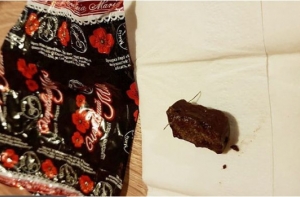 «Внутри одной из конфет был кусок металлической проволоки, который попал мне в рот! Выяснили, что конфета произведена на Украине. Называется «Мария», обертка черного цвета с красными цветами. Если у кого-то еще есть такие конфеты, будьте осторожны!», - написала жительница Резекненского края.