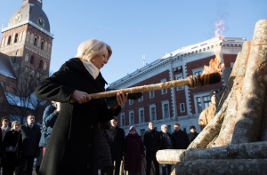 Вспоминая события 1991 года, латвийский народ будет всегда защищать свое государство, заявила председатель Сейма Инара Мурниеце, зажигая памятный костер на Домской площади.
