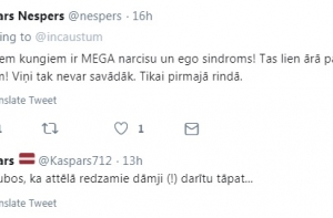«У этих господ МЕГА синдром нарцисизма и эгоизма! Это прет из всех щелей! Они же не могут иначе! Только в первом ряду», - считает Каспарс Несперс.