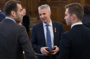 Во время отсутствия политика обязанности министра обороны возьмет на себя министр охраны окружающей среды и регионального развития Юрис Пуце(«Для развития/За!»).