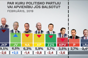 Опубликованы последние рейтинги партий за февраль 2019 года, согласно которым лидерство занимает по-прежнему партия «Согласие», у которой 19% поддержки избирателей. В то же время, согласно данным опроса, резко упала популярность KPV LV. Об этом сообщило Латвийское телевидение.