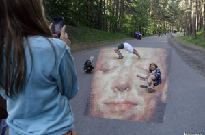 Трехмерное искусство в мире становится все более популярным. Это искусство, которое создает пространственную оптическую иллюзию. Если такой рисунок рассматривать с определенной точки, он создает иллюзию пространственной реальности, а изображаемое кажется «живым». В определенный момент человек становится участником сцены, изображенной на асфальте. Люди во всем мире фотографируются на 3D рисунках.
