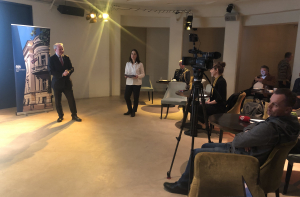 Посольство Великобритании сегодня представило журналистам два проекта, связанные со столетием Латвии. В ходе мероприятия в кафе кинотеатра Splendid Palace о предстоящих премьерах рассказали британский посол Кит Шеннон, военный атташе британского посольства Марк Сапсфорд и другие участники проектов.